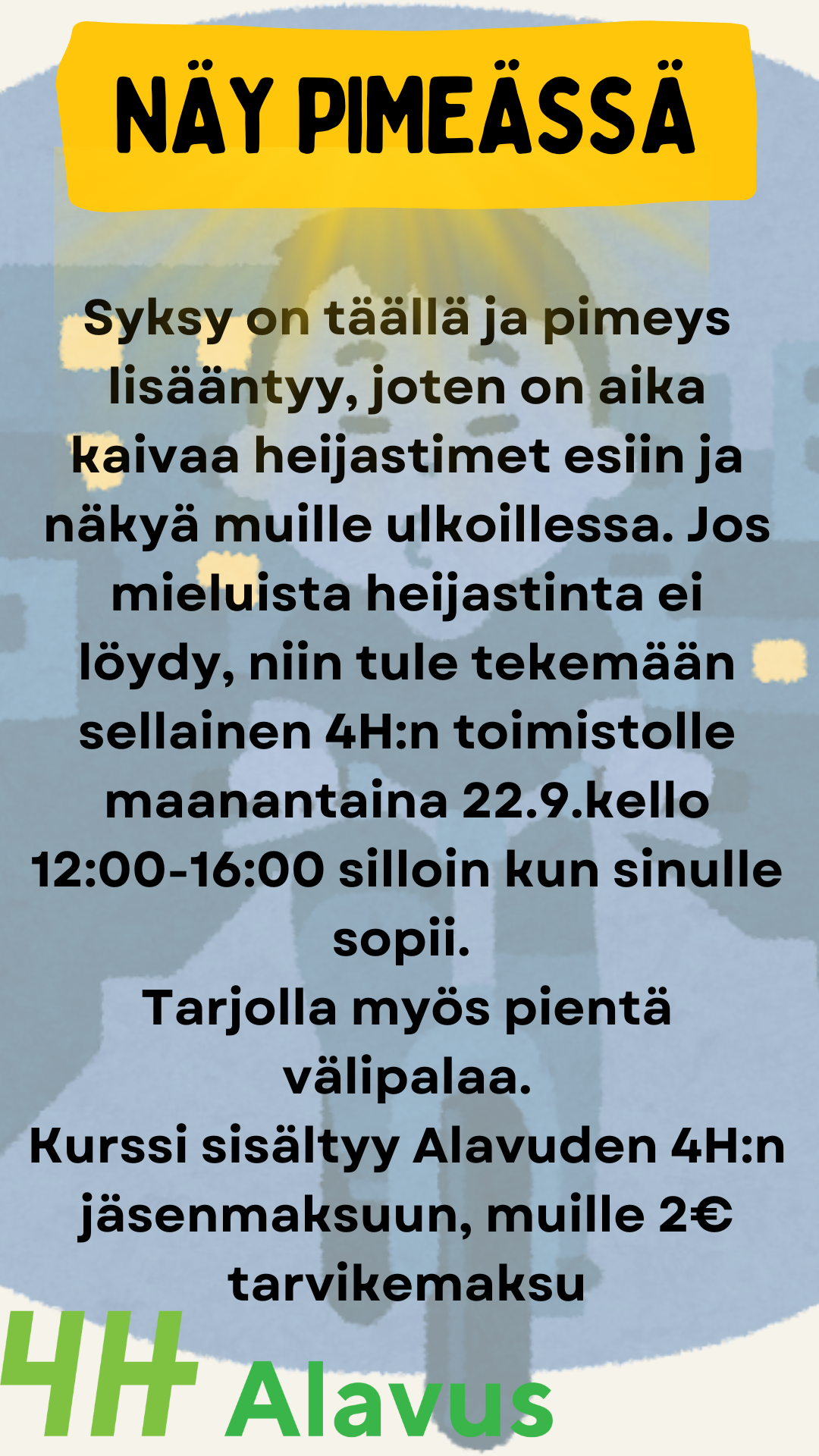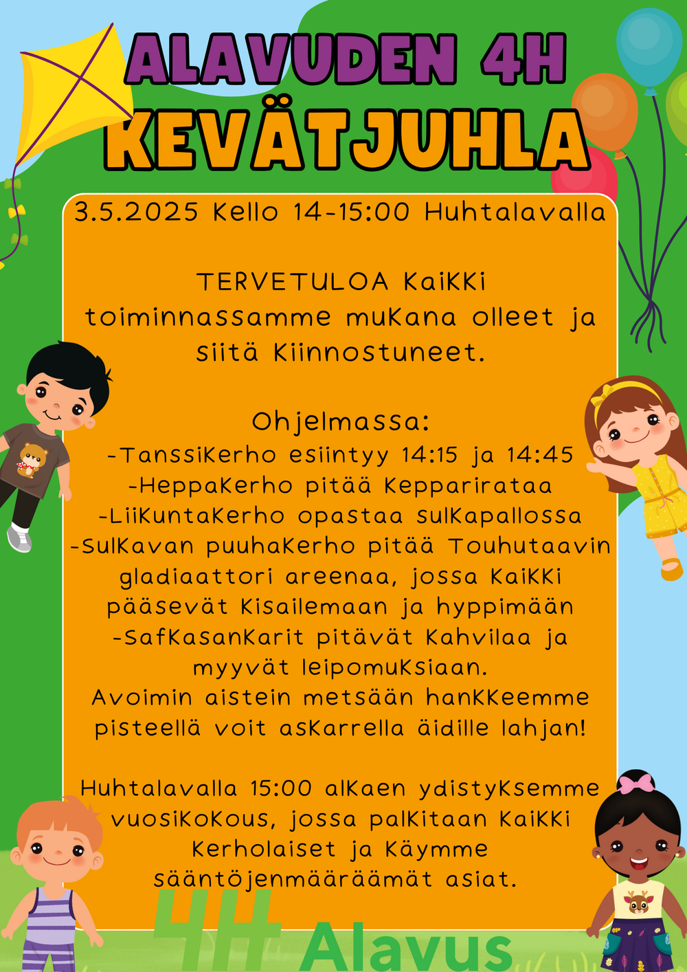 Alavuden 4H:lla on tapahtumassa kasvomaalausta kulttiksen tiloissa ja piha-alueella kepparirata sekä tehtäväpiste. Kaikki maksutonta, TERVETULOA!